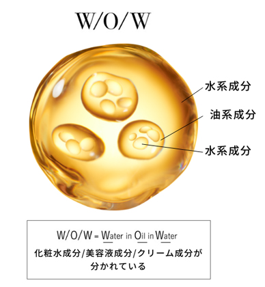 「W/O/W」とは「Water in Oil in Water」の略称で、油分の層の中に水分の成分が含まれるものを指します。